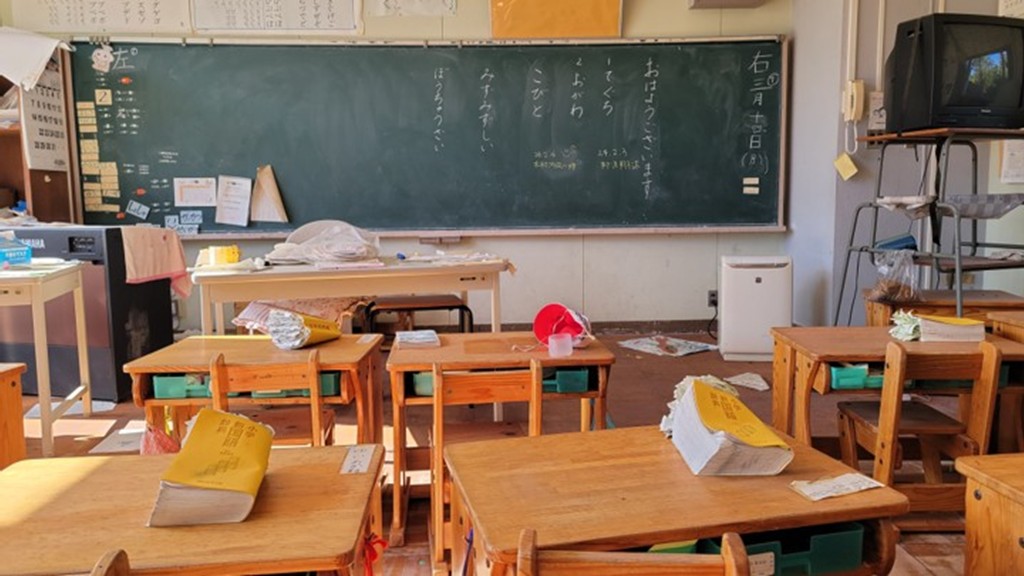 写真:熊町小学校の教室の様子。私物持ち出しの際に撮影したもの。(木村紀夫さん提供)